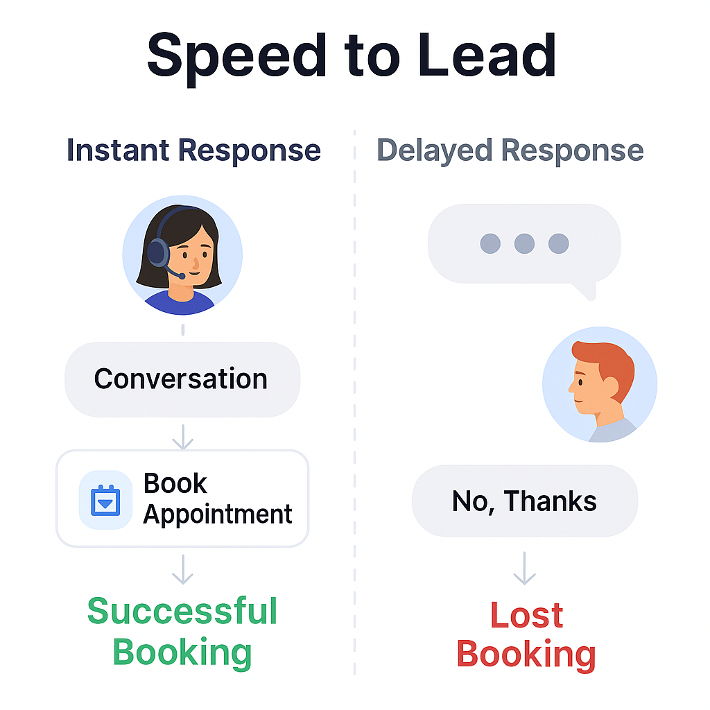 Homeowners usually pick the company that responds first. The AI receptionist replies immediately—no queue, no hold music—so you secure the appointment before others even dial back. Pair it with automated textbacks that include a booking link, and your inbound turns into scheduled work without phone tag.